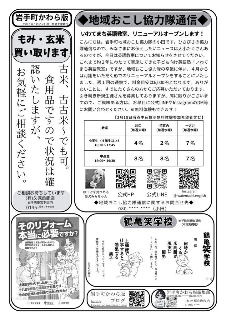 掲載やご相談については、岩手町かわら版編集部までお問い合わせください。